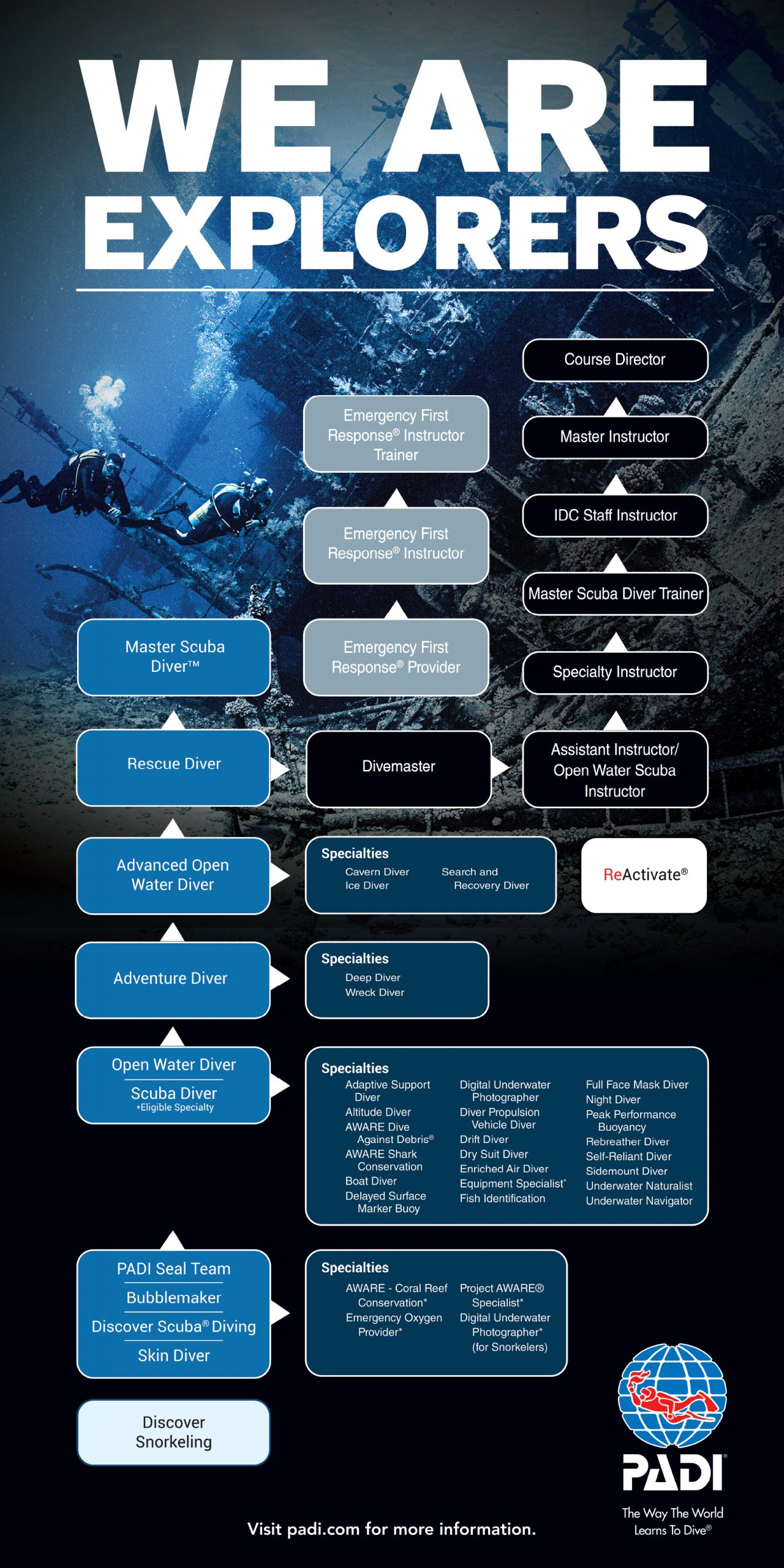 Please see the PADI Flow Chart to get more information about where you are on your dive education journey.